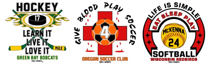 TIER 1 SPORTS CUSTOM APPAREL DESIGNS CUSTOM DESIGNS – IN YOUR TEAM COLORS! Select design, pick apparel and customize, including adding name, number, colors & more. VIEW CUSTOM DESIGNS Hockey, Softball, Baseball, Soccer, Swimming, Basketball, Volleyball, Wrestling, Tennis, Golf, Track, Cross Country, and more!